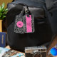 Monogrammed svart, vit, Rosa Geometric Mönster Bagagebricka