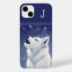 Varg älskare iphone case är blått, med en tecknad med vit varg i snö. Anpassa monogrammet för brev till kostym efter dina behov.