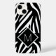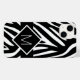 Fet och vild för djuravtrycket älskare. Ett svart och vitt zebra tryck mönster med ditt monogram inuti ett diagonalt svart med vitt gräns-område.