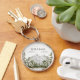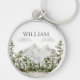 Monogrammerad akvarellberg och skog rund silverfärgad nyckelring