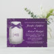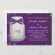 En vacker lila och plommonfärgad lysande glödande eldflugeburksvas för bröllopsshowers inbjudan som ser ut att lysa. Lägg till brudens och brudgummens initialer och/eller monogram på burken med ett djupt lila och vitt tryckt banddesign. En subtil vintage damask antik spetskant kompletterar denna rustika men ändå eleganta design med förtrollande eldflugor inuti och utanför burken. Dessa inbjudningar är vackra för en nattlig, ladugårds-, bondgårds- eller landsbygdstemat shower eller förlovningsfest. Konstverk © Chrissy H. Studios, LLC. Alla rättigheter förbehållna.