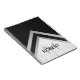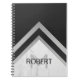 Denna moderna anteckningsbok har en geometrisk design med ett anpassningsbart namn och monogram i en vit marmorerad och silverram på svart bakgrund.