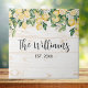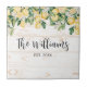 Vi presenterar vår monogrammerade gula citronträd vita trä keramiska plattan. Med akvarellillustration av sommarcitrusfrukt mot vit träbakgrund. Lämplig för naturälskare.