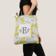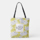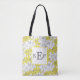 Monogrammerad gul och grå vit blomsterrig tygkasse