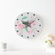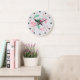 Monogrammerad kolibri rosa mint blomster DEKOR Stor Klocka