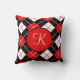 Monogrammerad röd svart vit Argyle-ruta Kudde