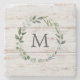 Monogrammerad Rustik Grön Salvia Blad Krans Stenunderlägg