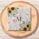 Monogrammerad Vintage Rustik Solros Dekupage Knapp