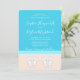 Bjud in familj och vänner till din kommande strandtema-högtid med dessa chic färgglada 5x7-inbjudningar. All text är enkel att anpassa eller ta bort. Pastellkorall och ljus turkosblå design med ljus vit typografi, söta monogram-flipp-floppar på en abstrakt modern minimalistisk strand, och anpassningsbar text på baksidan som lyder "vid havet lovar jag dig min kärlek". Den handskrivna stilen med kalligrafi liknar att skriva i luften ovanför havet. Denna stilrena tropiska bröllopsinbjudan är ett elegant sätt att be gästerna närvara på din speciella dags firande i paradiset.