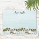 Monogrammerade Vattenfärg Kokospalmsträd Strand Anteckningskort
