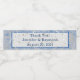 Design har en elegant blå och grått-tonad "marbling"-effekt som bakgrund till den form som visar texten med blå text. Anpassadets text innehåller er tacksamhet, namn av brud och brudgumm och datum för bröllop. Utseendet på fintvätt rosett band och utlöst ris täcker över designen. Designad att åtfölja "Blue and Grått Marble Bröllop Suite".