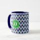 Monogrammet Blue & White Zigzag Chevron Mugg
