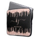 Girly, Elegant, Sylish, Light Ro Guld Glitter Drips 2 Monogram Script anpassningsbar personlig namn monogrammed laptop sleeve på svart. Med ett modernt lyxfaux ljusa rosa ro glitter som droppar ram, ett stort dubbla (2) handskrivet monogramskript med dekortecken (i stort storlekt initialer) och ett serieteckensnitt guld i namn på svart bakgrund. Enkel att anpassa den. Underbar kvinnlig flickvän, mor, födelsedag, söt 16 födelsedagsfester, möhippa, företag, hemkontor, professionell arbete och för alla som tycker om söt glamourous shiny sak.