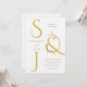 Monogram - minimalistisk vit och Guld - Modern bröllopsinbjudan
