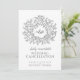 Mycket mörkgrå handritad bladmonogram vigselavbokningskort. Detta enkla men stilrena kort är en del av den matchande mörkgrå handritade bladmonogram vigselserien. Perfekt att använda som vigselinformationskort för att informera dina gäster om en vigsel eller evenemangsavbokning, eller för att boka om på grund av sjukdom eller oförutsedda omständigheter. Enkel blad design som cirklar dina egna monograminitialer. I klassisk sofistikerad mörkgrå nästan svart och vit. Andra färgalternativ finns tillgängliga. Originaldesign av Sarah Trett för www.mylittleedenweddings.com