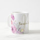 Monogramnamn Färgrik Rosa Blommig Silver Elegant Kaffemugg