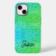 Lägg till ditt namn på den här designen av gnistran för övertoningsblått och grönt glitter.