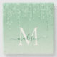Monogram-skriptet Namn Stone Underlägg Modern Elegant Mint Grönt Gnistra Glitter Stone
