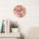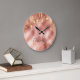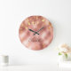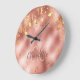 En elegant, giftig, glamorös väggklocka. En trendig ro guld-komplex, metallisk tittar bakgrund. Dekorerad med guldstjärnor. Anpassa och lägg till ditt namn och monogram, initialer. Golden Nummer.