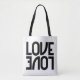 Modern monokrom väska med ord "KÄRLEK" som skapar en harmonisk bild av spegel.