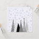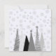 Monokromatiskt Vinter - vitt julkort. Abstrakt konst som skildrar skarp coola vinter vit och grått snöflingor och Julgranar silhuetter. Bakre personlig med elegant-typografi.