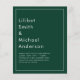 ⭐ OBS! Detta är ett pappert alternativ med låg budget. SATIN är den tjockare avsluta här, matt är som papper. Kuvert ingår INTE. Om du vill ha mer traditionella pappra vikter och storlekar kan du visa den bifogade samlingen eller överföra designen via verktyg på produktsidan till "inbjudan eller vykort som krävs för evenemanget". ⭐ monokrom Elegant emerald grönt bröllop objekt. Om du vill ha hjälp med att skapa ett unikt, anpassat objekt kan du komma åt Zazzles FREE LIVE DESIGNER eller användan TRANSFER-verktygen på sidan. ⭐ Visa den bifogade samlingen och "ytterligare produkter" om du vill visa bröllop-sviten som innehåller den här designen eller färg-temat. Detta kan omfatta bröllop och inbjudningskort för möhippa, inbjudningskort för repetitionsmiddagar, inbjudningskort för brudmatsalar och för att spara datum, osas, favoritmärken, klistermärken och mycket annat. Lämpligt för vår, sommar, höst, höst, höst, vinterbröllop, inomhus eller utomhus, berg, sjö, ladugård, landskap, slott, trädgård, trädgård. Ton underbara utformningar och alternativ för alla budgetar. ⭐ Malldesign ©LeahG Grundare av LowBudgetWeddingNetwork® För planeringsråd från bröllop, besök oss på www.weddingdesignchic.com. Här kommer du att få information om hur du ska planera din perfekt med lågbudgetBride bröllop, skriva ut kostnadsfria checklistor för bröllop och ladda ned en kostnadsfri handbok för utskrift av bröllop.