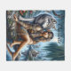 Under ljusglöden från ett fullt måne sitter en indisk kvinna glatt bredvid en stor varg, och deras band är tydligt i lugn och ro. De är omringade av lush träd och milt vatten, de förkroppsligar andan av harmoni inom naturen.