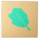 I den här plattan visas en turkos löv som är placerad i mitten som vilar på en mörk orange yta, färg som kan ändras efter eget val.