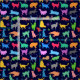 En sömlös mönster av färgfulla katter och stjärnor mot mörkens blå bakgrund. Du kan använda den här söta väven för alla hantverks- eller konfektionsprojekt med mera. Var bara kreativ, gör något elegant och var lycklig!