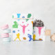 Mönster av färgstarka fotbollsspelare på vita presentpapper