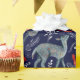 Mönster av kutym skogsdjur på marinblått presentpapper