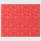 Mönster av snöflingor, stjärnor, växter i rött presentpapper