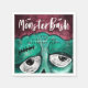 Monster bash Zombie-themed Halloween fest papper napkin design. Utformningen illustrerar vår egen handritade illustration av en nära bild av ett zombiskt monster ansikte och hjärna. "Monster Bash" visas i en handskrift för penselskript i snyggt i vitt med detaljerna i Halloween fest som visas över Zombie-teckningen för att skapa en djärv och unik Halloween fest-design. Alla illustrationer som finns i denna fet tematiska inbjudan till Zombie Halloween är handritade originalbilder av Moodthology.