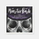 Monster bash Skeleton-themed Halloween fest napkin design. Utformningen illustrerar vår egen handritade illustration av en närsynt bild av ett Skeletonmonster ansikte som bär en mörk lila top hat. "Monster Bash" visas i en handskrift av snyggtens penselskript i vitt som visas över skelettteckningen för att skapa en fet och unik Halloween fest-design. Alla illustrationer i denna fet Skeleton Halloween-temadesign är handritade originalbilder av moodtologi.