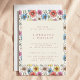 En levande vattendjup gräns av vilda blommor från hand plockade stil i blått, korall, gult och rosa. Utformningen omger ett crisp-gräddcentrum där händelsedetaljer visas i modern serif typsnitt med raffinerade accents från ro guld. Den oklanderliga layouten och motivet för den livliga blommigten blandar contemporaryns sofistikering med romantisk charm, skapar denna inbjudan perfekt för vår, sommar, trädgård eller firande. Baksidan förblir ren om du vill ha mer information eller en personlig anteckning, så att ditt meddelande känns både glatt och tidlöst.