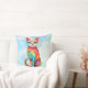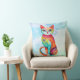 En sjudande färgad-katt avbildas med mönster och en viskartad utformning med rosa, grönt och orange. Dess stora ögon och lekfulla uttryck bidrar till det livliga och uppfinningsrika stil.