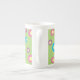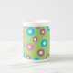 Blommigt med färgad daisy mönster på gröntens bakgrund med ben china mugg.
