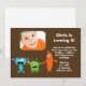 De här söta monster födelsedagsfest inbjudan är perfekt för en födelsedagsfest, eller när som helst. Tre färgstarka tecknader med födelsetal och en festiv cupaka. Anpassa den här inbjudan med information om foto och party. Gör party till en underbarare nyckelperson som du kan behålla till kom i flera år. Babystar-design