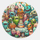 Lägg till en liten bit stollig till yta med detta "Monster Födelsedagsfest"-klistermärke! Den här klisterlappen är en perfekt för att le någons ansikte. Den har en levande och lekfull illustration av diskreta varelser som firar en födelsedag med hattar, ballonger och en festkaka.