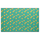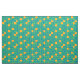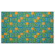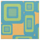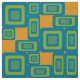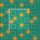 Tyg som inspireras från 60'sen-70s med en orange bakgrund och stylistic blåttkuber i olikt, storleksanpassar och formar.