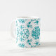 Mönster för Aqua and White Blommigt Damask Kaffemugg