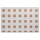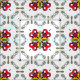 Ett handmålat mönster av röd orange, dämpad grönt och blommigt för gult, inspirerat av gamla spanska plattor