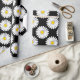 Ljust och gladlynt vårblommamönster som slår in papper med mönster för blomma för daisystil ett grafiskt i svart, vit och gult som tillfogar ett handlag av naturen till ditt ge sig för gåva.
