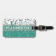 Ett aqua-/turkos-/krickaglitter, som sparkles på grunden och ett mönster med twirl/virvlar runt mönster för blommadesignbakgrund på det bästa med grönt/aquavines och rosor/lila blommor. Centrera lämnas för monogrammärkning/personifierar omgivet med vitdiamantrhinestones. (FOTOTRYCK)