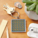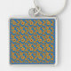 Mönster för gula orange blommor fyrkantig silverfärgad nyckelring
