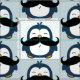 Knubbigt pingvinmönster för gulliga blått med en enorm svart moderiktig mustasch. Mönsterpingvin med mustasch.