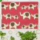 Röd lycka tillkawaiinatur/djurt mönster av den gulliga elefantkökshandduken för elefanter.