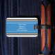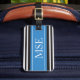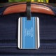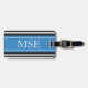 Personligblått, det svartvita randiga mönster eller designen med den beställnings- personligmonogramen eller initialer på bekläda och adressen specificerar på baksidaen för reser hänger lös bagagemärkre. Klicka "skräddarsy" knäppas för att personifiera din gåva och för att tillfoga din egna initialer på bekläda och för att tilltala information på baksidaen. Välj dina egna stilsort och färger för att göra det ditt eget. Detta ska snyggt, elegant och chic nautiska randmönster gör en underbar gåva eller danar åtfölja för dig, eller någon som du älskar. Perfekt liten gåva för jul, födelsedagar, högskola, tack. Passande för manar, pojkar, kvinnor, tonåringar, flickor. För mer färger gå: www.zazzle.com/D_Zone_Designs