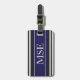 Det personifierade marinblåa svartvita randiga mönster eller designen med den beställnings- personligmonogramen eller initialer på bekläda och adressen specificerar på baksidaen för reser hänger lös bagagemärkre. Klicka "skräddarsy" knäppas för att personifiera din gåva och för att tillfoga din egna initialer på bekläda och för att tilltala information på baksidaen. Välj dina egna stilsort och färger för att göra det ditt eget. Detta ska snyggt, elegant och chic nautiska randmönster gör en underbar gåva eller danar åtfölja för dig, eller någon som du älskar. Perfekt liten gåva för jul, födelsedagar, högskola, tack. Passande för manar, pojkar, kvinnor, tonåringar, flickor. För mer färger gå: www.zazzle.com/D_Zone_Designs
