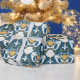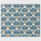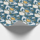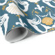 I den gamla dammen tapet i mönster finns illustrationer av sjöjungfruar och sjöhylsor i vitt och senap i guld mot en mörk med tårblått bakgrund. Denna papper är perfekt för att slå in presenter med ett nautiskt tema eller för att slå ihop en present till fläkt av sjöjungfruar.